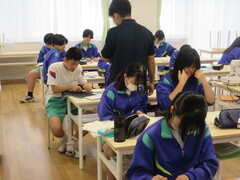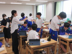 今日は、顕微鏡を使って観察をしていました。3年生は、手順などは
