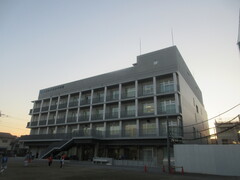 新しい校舎が夕日に映えています。これから、寒くなりますが、夕焼けが