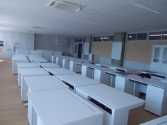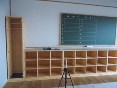 職員室の様子です。まだ、並べて羽織りませんが、机と棚が搬入されています。