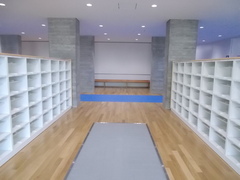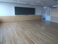 教室の様子です。まだ、机や椅子は置かれていません。今までの教室は7m×9mの縦長でしたが、今回の教室は8m×8mの正方形です。