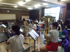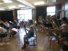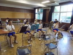 夏休み後半の部活動が行われています。吹奏楽部は8月30日に矢口東小学校で