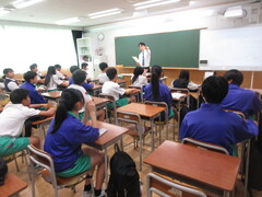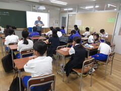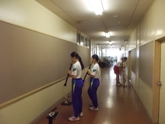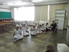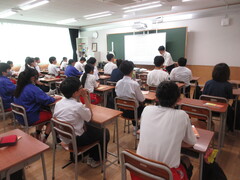 熱中症予防のため、8時から練習を始めた野球部ですが、WBGTの値が高いために9時から室内での練習に移りました。画像は、教室でのクールダウンの様子です。