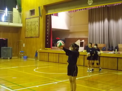 同じく体育館棟では、バレー部も練習をしていました。サーブの練習をしています。