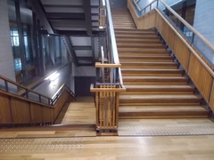 校舎中央にある、階段です。X状の面白い構造になっており、昇降が重なることなく一度に多くの生徒の移動ができます。