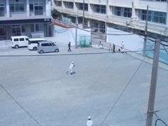 昨日話した通り、校舎改築工事および移転は、校舎内のICT関係配線や机や椅子や棚などの備品の設置や搬入に移っています。