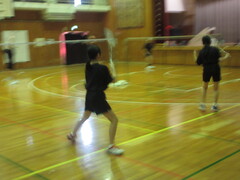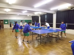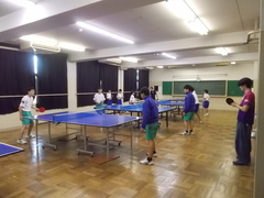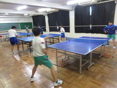 体育館では卓球部が活動していました。顧問のほかに2名の部活動指導員が、丁寧に指導をしていました。