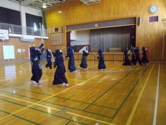 剣道部は、移動しながらの面や小手の打ち込みをしていました。体育館の外においても、竹刀と防具がぶつかる音が聞こえています。