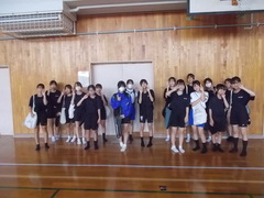 練習開始前の集合写真です。バトミントン部も部活動指導員の指導の下、練習を進めていました。