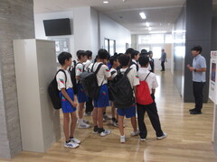 1年生が校内めぐりをしています。まわりながら、ついあちこちを触りたく
