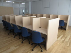 写真は、新たに作られた学習室です。個別のブースが26台あり、集中して