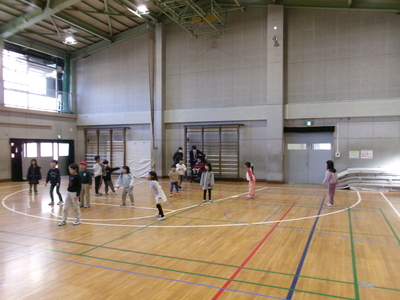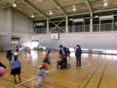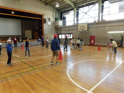 体育館で、ドッジボールや氷おに、なんでもバスケットを一緒に行い、楽しい一時を過ごしました。