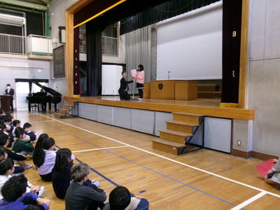 2月20日(児童鑑賞日)、21日(保護者鑑賞日)の音楽会当日に向けての学年練習です。