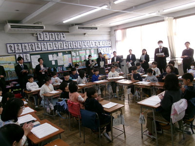 今年度、校内研究では、国語(話す・聞く領域)で進めています。本日の5時間目は、校内研究の研究授業日でした。