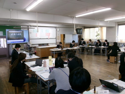 本校で、5時間目に全学級で授業を公開し、ICTを活用した各教科の学習を雪谷中学校、池雪小学校の先生方に参観していただきました。その後は分科会に分かれ、本日の授業に関してやICTの活用の仕方、こどもたちの様子、今年度を通しての振り返り等について話し合いました。
