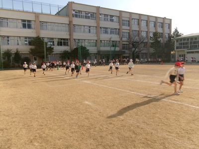 寒さが厳しい朝でしたが、2分、3分と走っているうちに体が温まってきたようです。冬は、短縄や持久走など心拍数が上がる運動をして鍛えられる時期とも言えます。