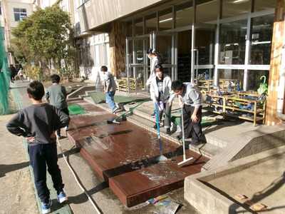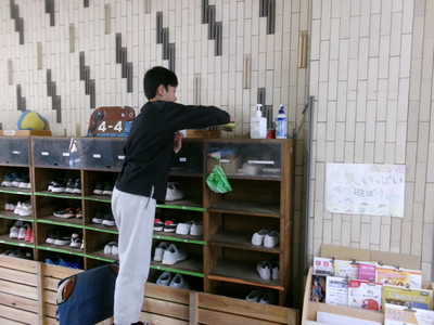 家庭科の授業で、6年生が校内をきれいにしようとクリーン大作戦に取り組んでいました。