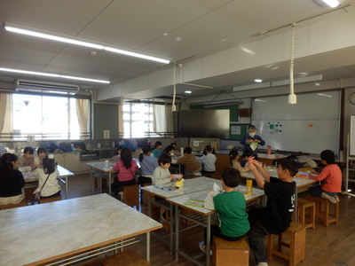 教室の前を通ると、2年生のクラスで何やら楽しそうに活動していました。